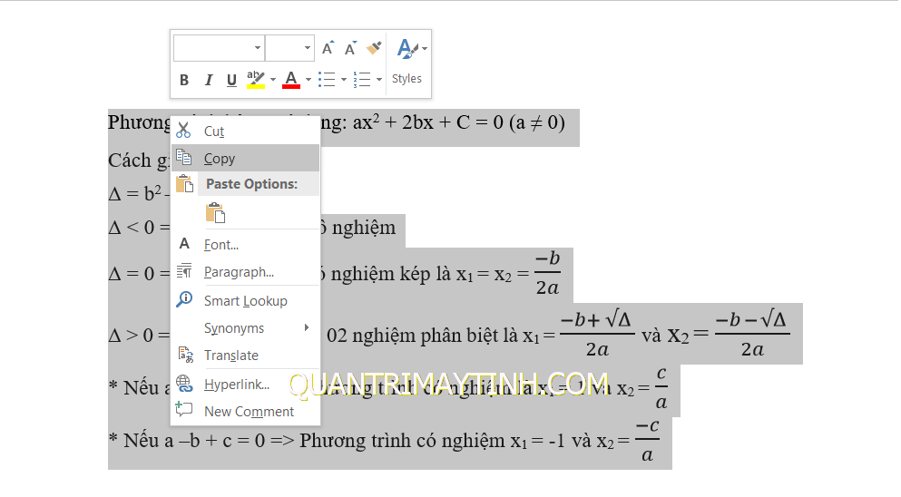 Bước 1: Bạn bôi đen đoạn văn bản cần sao lưu rồi click chuột phải chọn Copy.