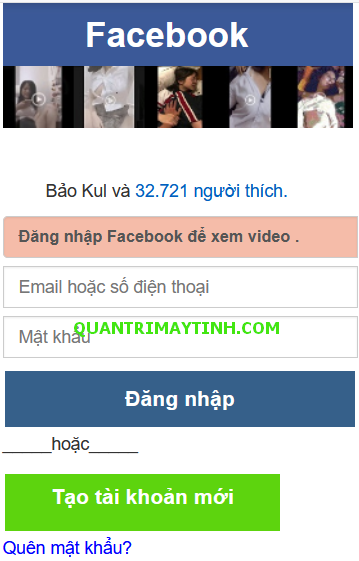 Trang giả mạo sẽ yêu cầu bạn phải đăng nhập bằng Facebook thì mới được xem video. Sau khi bạn điền tên tài khoản và mật khẩu, click nút Đăng nhập thì trình duyệt mới chuyển đến trang xem video. Nhưng bản chất bạn không hề đăng nhập bằng Facebook, cái nút Đăng nhập đó có tính năng gửi thông tin bạn điền ở 2 dòng trên đến máy tính của tin tặc.