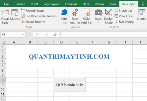 Nếu bạn chưa bật hiện thẻ Developer thì đọc bài viết Cách bật hiện tab Developer trong Excel.