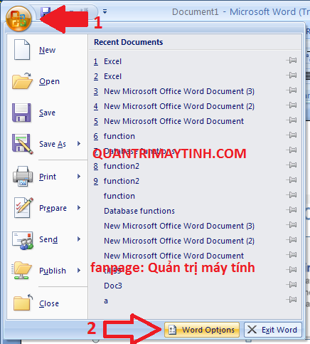 Đối với Word 2007 thì bạn click icon Microsoft Office rồi chọn mục Word Options